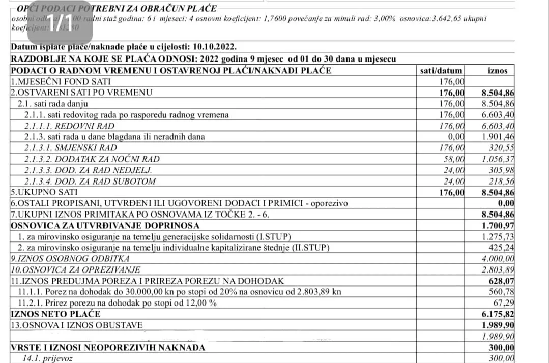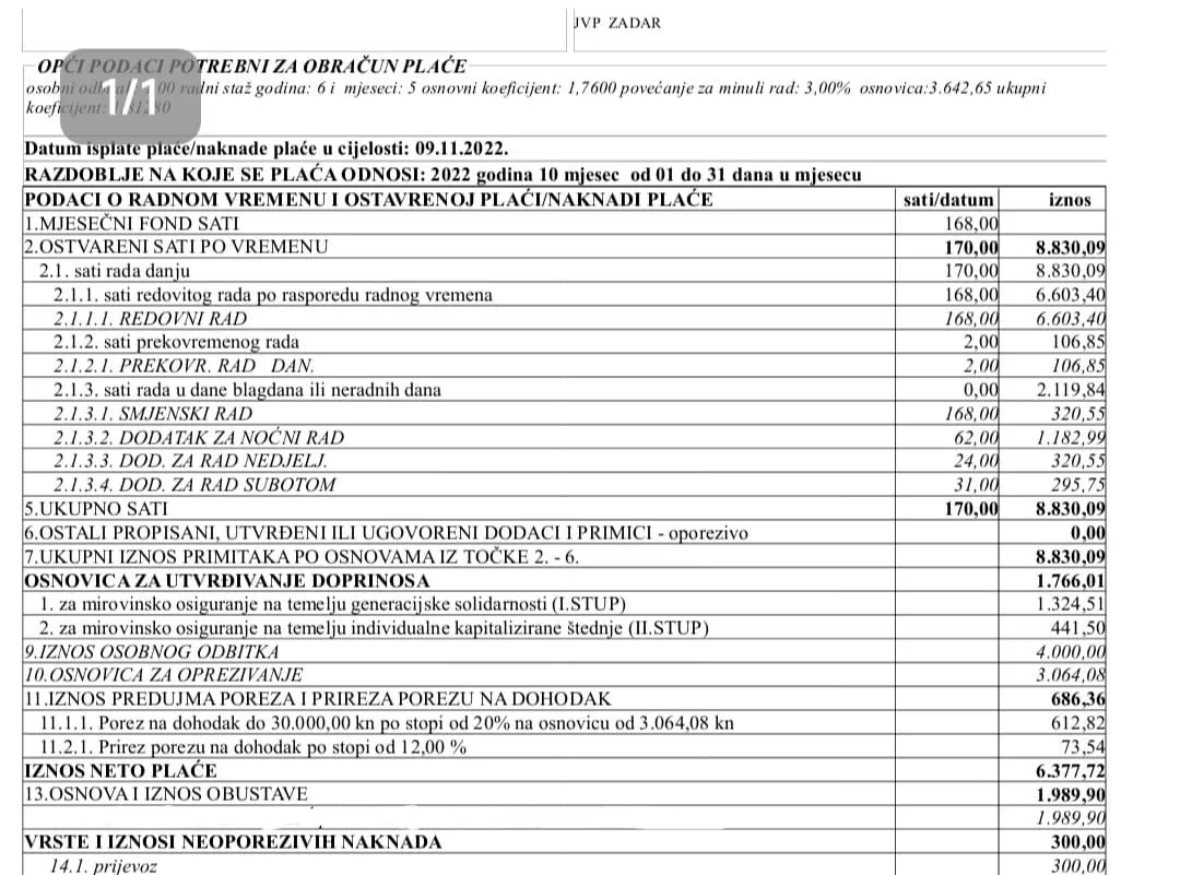 - također dostavljamo dokument (platnu listu) voditelja grupe za koju zapovjednik također u medijima iznosi neistinu da je 8.500,00kn. (dokument je u prilogu). Iz dokumenata je vidljivo da je plaća oko 6.200,00kn.